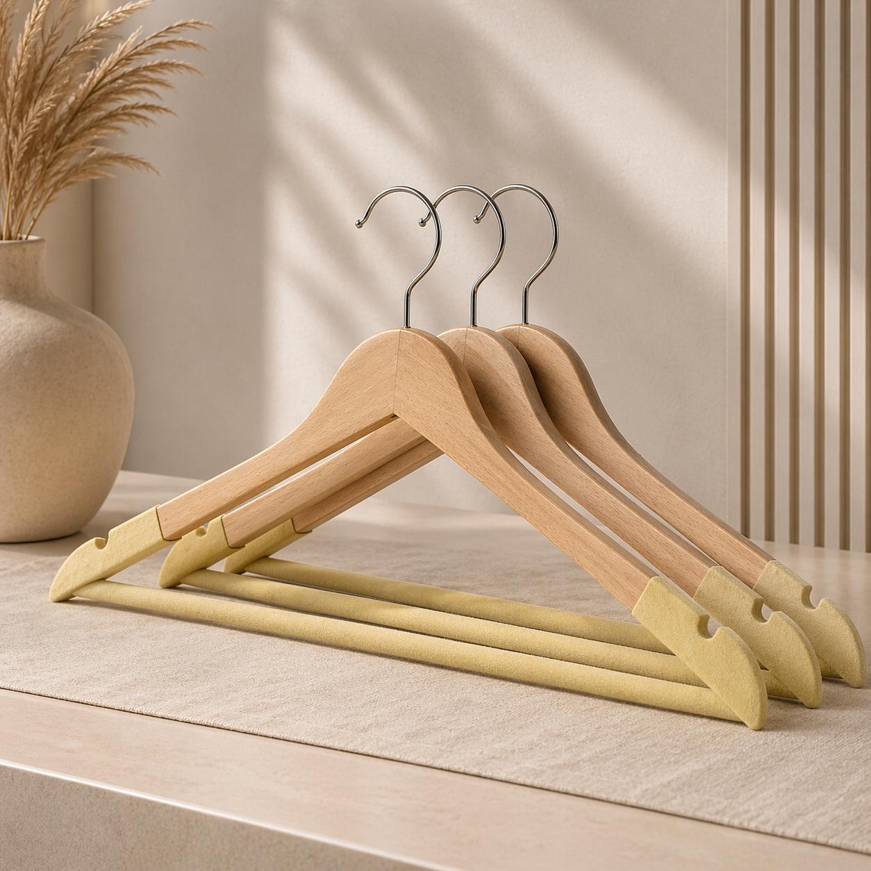 WOODEN CLOTHES HANGER WITH CHAMOIS