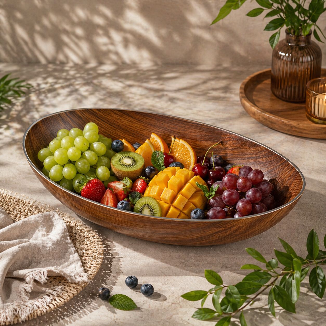 LARGE OVAL WOOD STYLE SERVING BOWL 25×35.5CM