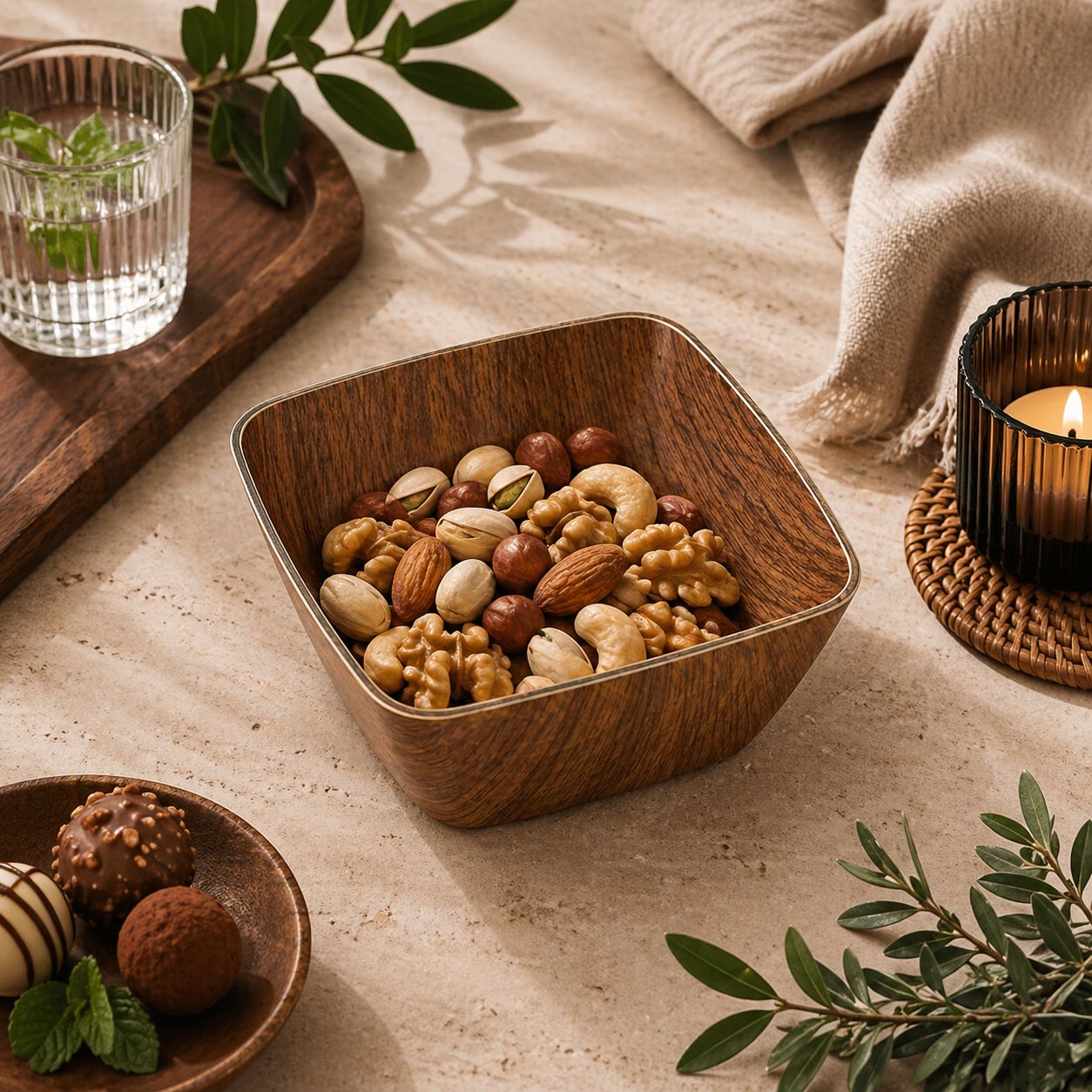 COMPACT SQUARE WOOD STYLE SERVING BOWL 14CM
