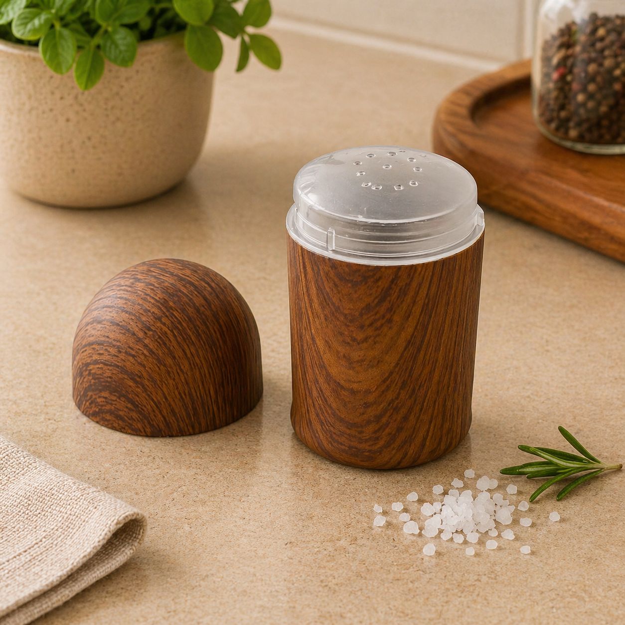 WOOD STYLE SALT SHAKER WITH LID 9CM